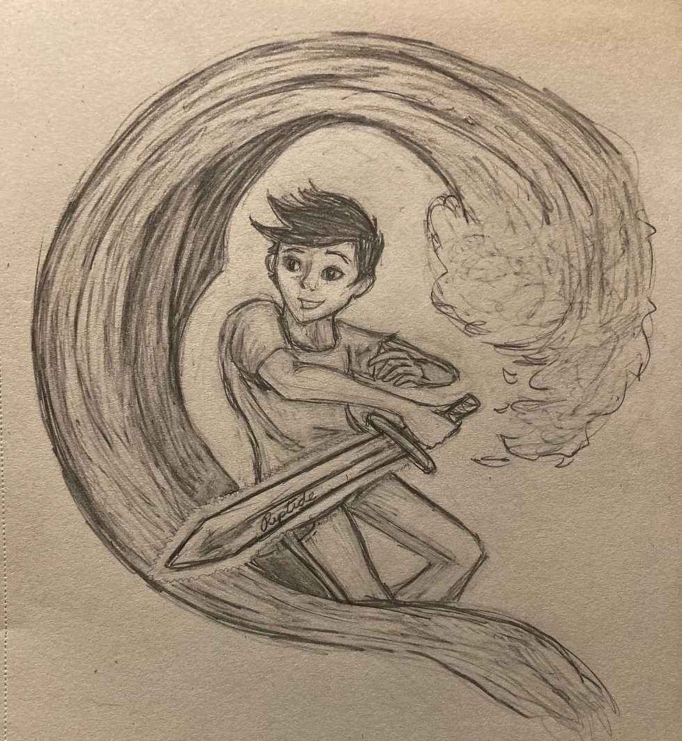 I like the way that you drew the wave's cap! It's also really neat how Percy looks like he is surfing but isn't because he doesn't need a surf board!