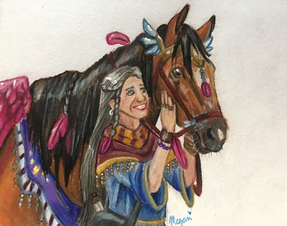 This is Istonya Storyteller and Saga (Mossberry) her traveling companion. Istonya is a traveling storyteller who is famous for her tales, which all, she says, are true. She is kind, a bit mysterious, and has an excellent memory. Her bond with Saga is strong, so much so that some say that she is a Meld, but no one can know for sure if it is true or not.