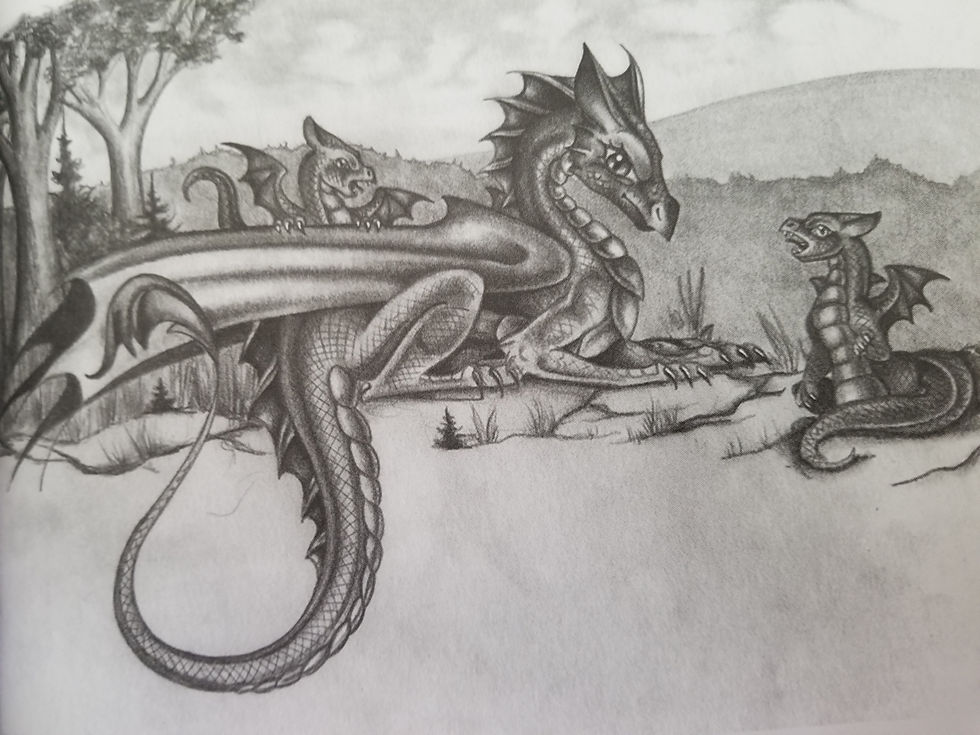 Description: Her scales are pale pink, like the sunset from the view of the beach, mixed with sand colors so it always looks like they're changing colors when she moves, small dragon with big wings, but she can squeeze through very tight spaces. Two long pointed razar sharp horns on head.